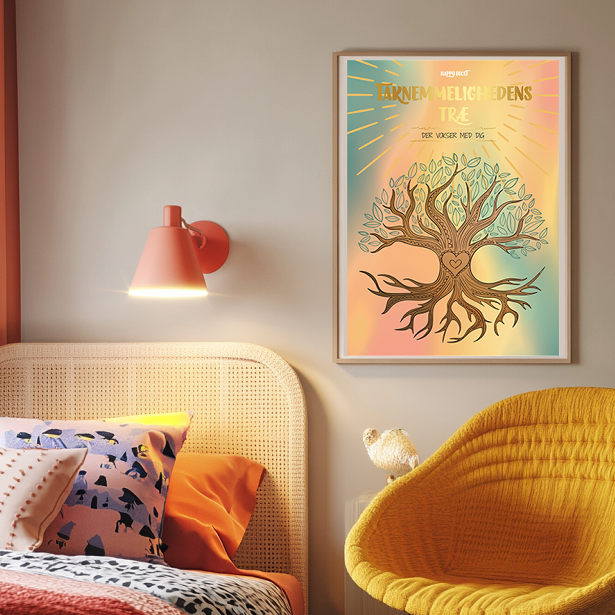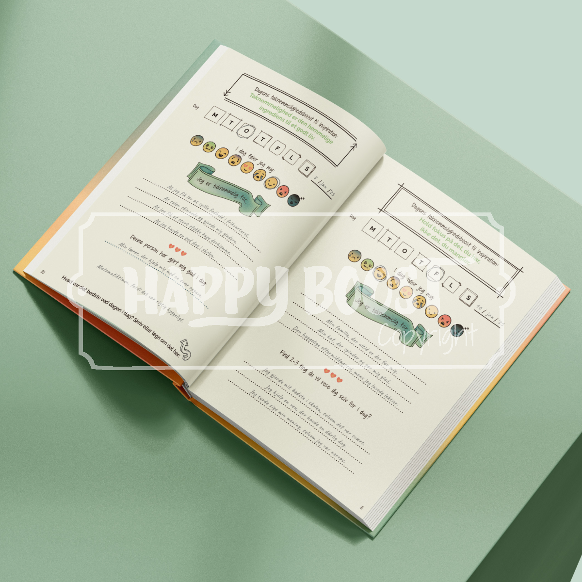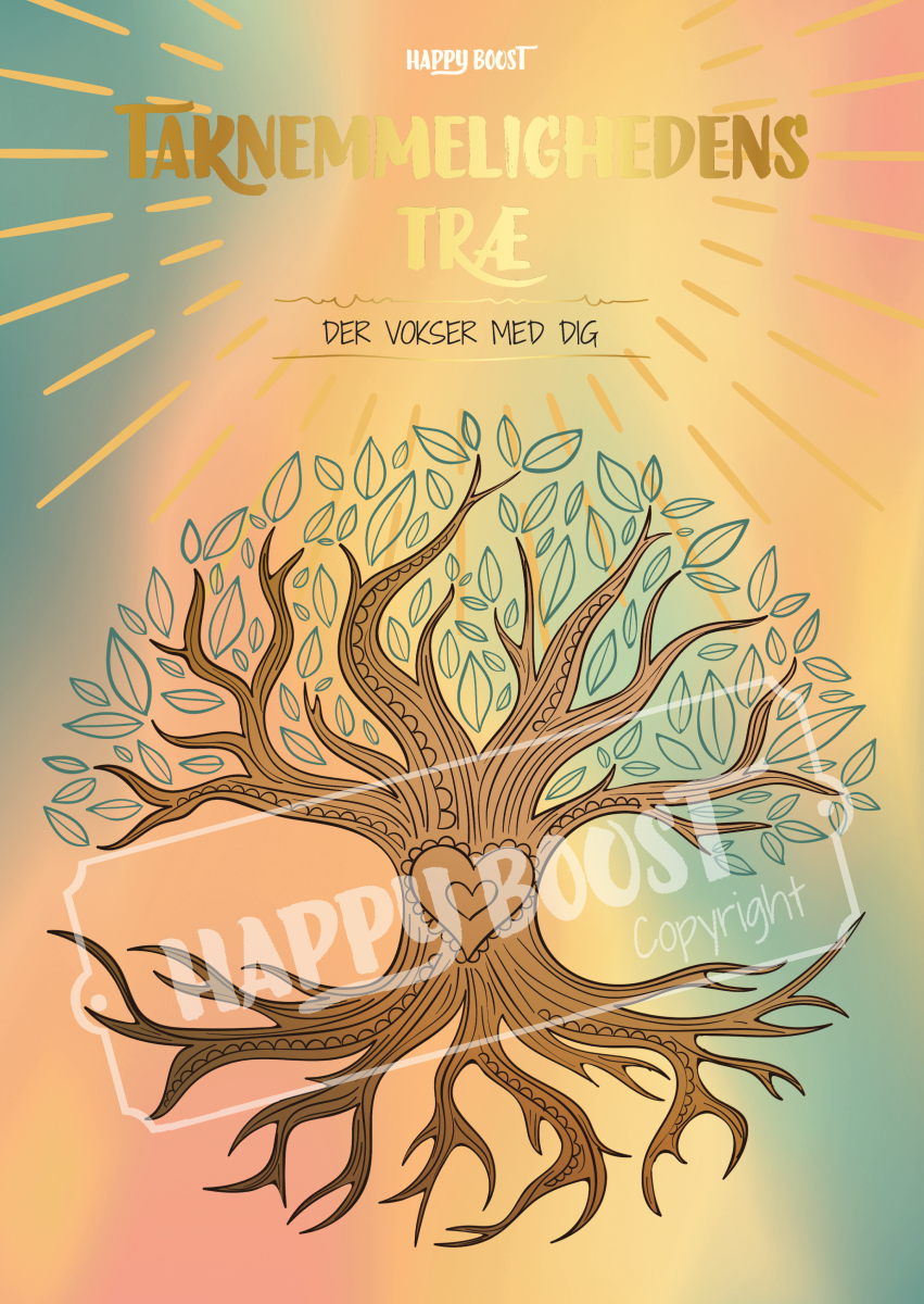 Denne pakke indeholder både Happy Boosts fysiske taknemmelighedsdagbog og den farverige plakat Taknemmelighedens Træ i 50×70 cm.