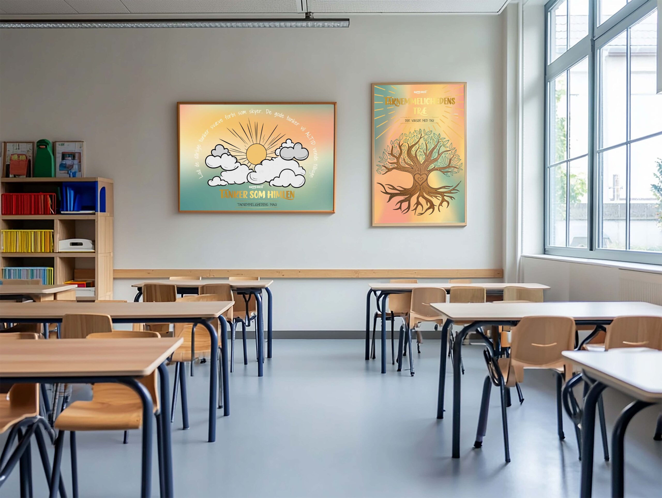 Et inspirerende klasseværelse starter med stærke visuelle budskaber! Happy Boost-plakaterne er skabt for at minde eleverne om værdien af taknemmelighed, fællesskab og positivitet – hver dag.